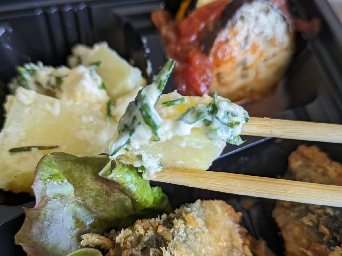 こちらが今回テイクアウトしたお弁当です!イワシフライ2尾にポテサラ、お店のチョイスで入るおかずにはラタトゥイユ入れてくれました~ラタトゥイユもちょっと気になってたので嬉し~
