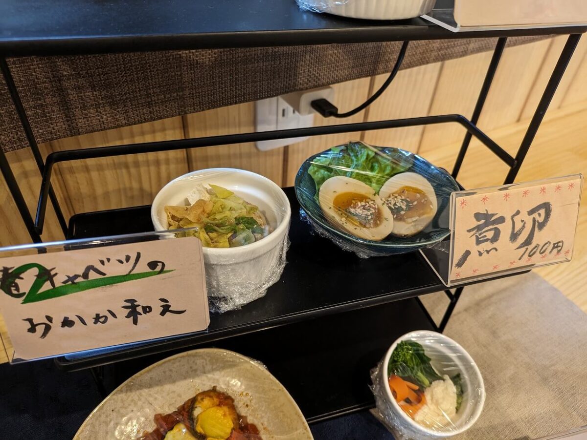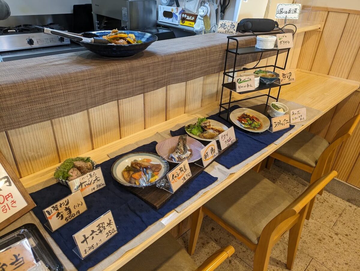 お惣菜は日替わりなのでこちらは参考までですが、この日はこんなお料理が並んでいました。実際にカウンターに並んだおかずを見て選べるシステムです!